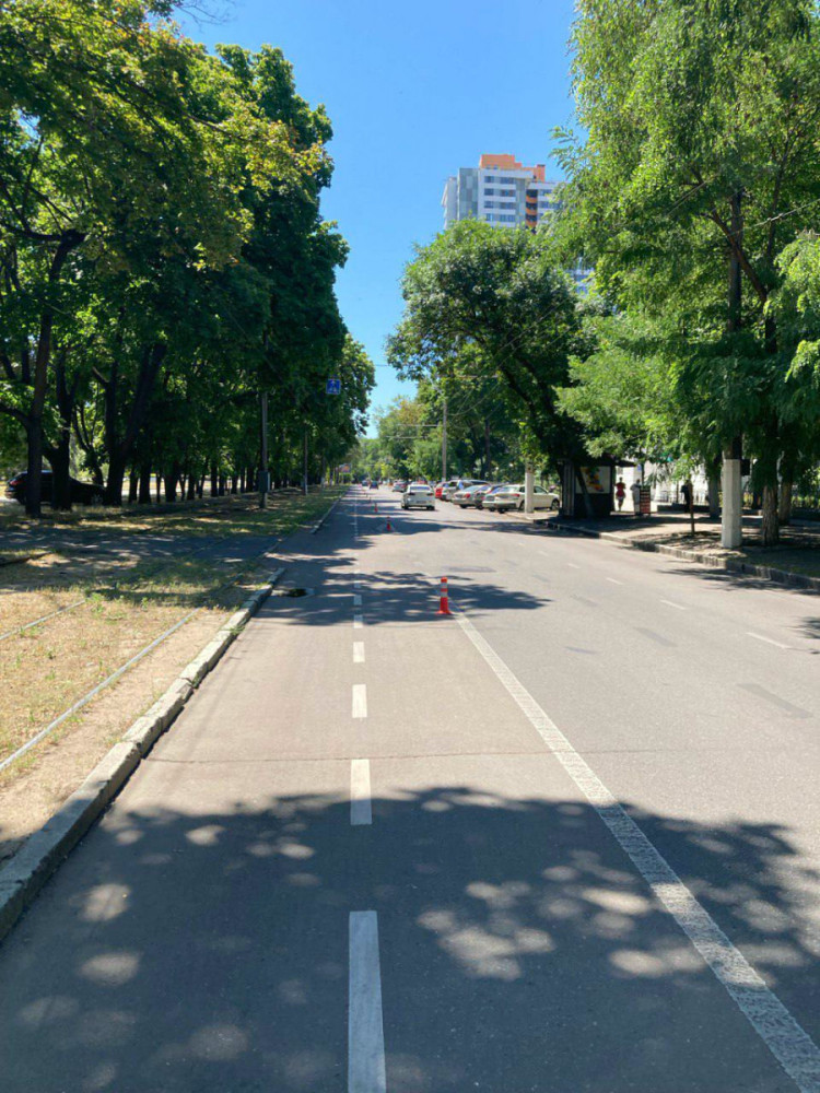 На даний момент завершено встановлення стовпчиків-делініаторів уздовж велосмуги на вул. Канатній, від вул. Пироговської до 2-ї станції Великого Фонтану.